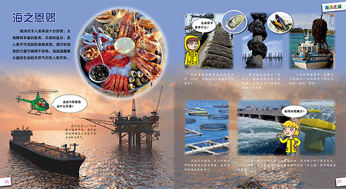 《海洋之谜》以海洋为主题,其中包括海水如何循环,海水的颜色,不同质地和颜色的海滩,大海涨潮和落潮的特点以及可以做哪些有趣的事,生活在海洋里的各种生物,如鱼、海豚、甲壳类动物等等,各种各样的贝壳长什么样子,珊瑚礁里都生活着哪些动物,极地海洋什么样,海底深处是什么样子的,大海会为我们带来哪些有用的东西,大海发怒的时候什么样,人们如何捕鱼、船都有哪些。