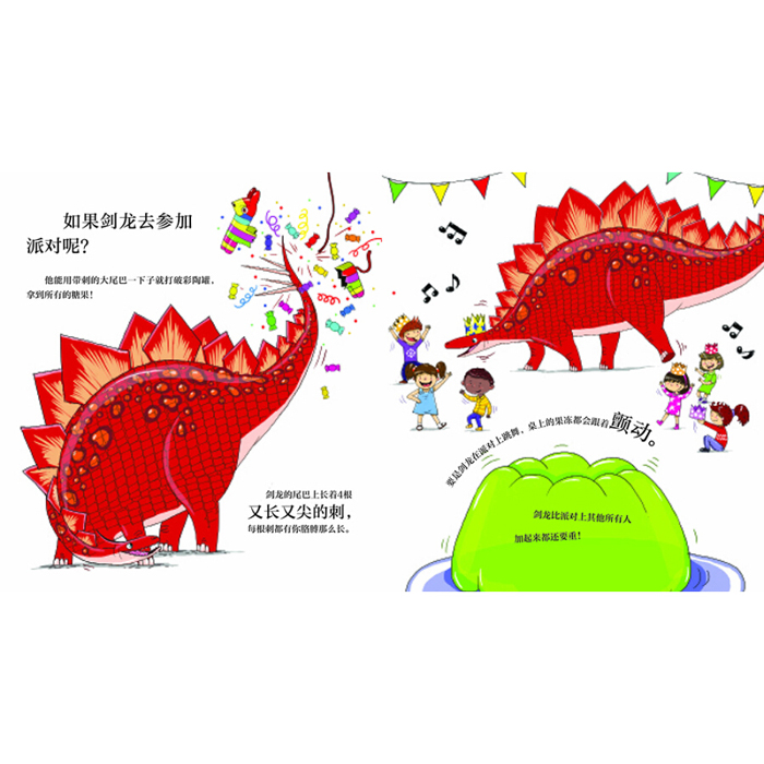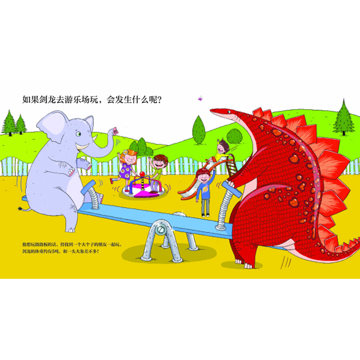 《剑龙喜欢逛超市吗?》是一本脑洞大开、充满趣味和幽默感的科普绘本。故事假设体型巨大的剑龙生活在现在,和人类成为朋友的故事。书中包含了各种爆笑小细节,比如它去游乐场玩跷跷板,去学校和孩子们一起学习……是一本将科普知识融入天马行空的趣味故事想象力绘本。11幅对开大图,10个趣味互动问答,搭配夸张搞笑的图画,加上讲解生动的科普内容,带领孩子轻松了解剑龙。