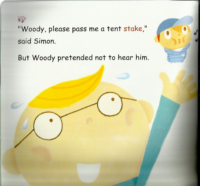 可是,故事中去参加露营的伍迪,为什么显得很不开心?当大家都在忙,他为什么置身事外,不想参与呢?也许你已经看出来,伍迪的个性内向害羞,缺乏自信心,因为担心大家取笑他做不好,才不敢上前帮忙,只好以傲慢的态度来掩饰自己的心虚。幸好伍迪?有拒绝参加营火晚会的演出,才有机会在排练中让同学们注意到他对演出的方式有许多好点子呢!这样的团队合作经历,必然成为大家在这趟露营活动中最珍贵美好的回忆。