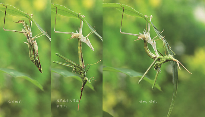 你知道吗,蚱蜢的卵也藏在地底下,幼虫也是从地下钻出来的呢!蚱蜢的幼虫很能吃,从早到晚,吃个不停。它不停地吃,不停地长大,不断地蜕皮。生命就是如此进行的