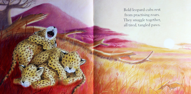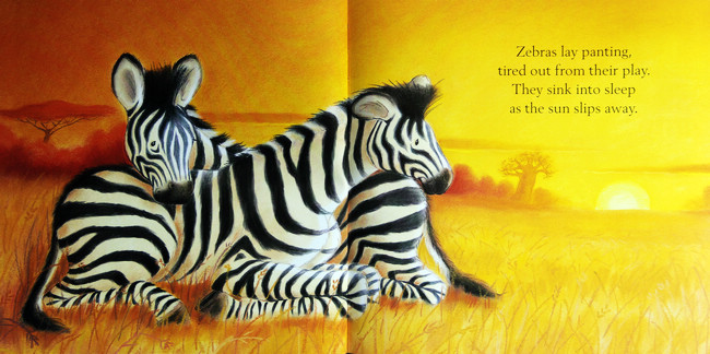 太阳将天空染得红通通的,好温暖喔!该回家睡觉了。从小河马到顽皮猴,所有的小动物相互依偎,在摇篮曲中静静睡着。宝宝也该睡觉了!