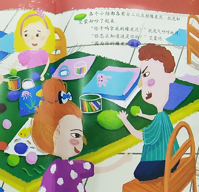 儿童情商培养与社会交往系列”是由BSG团队策划,邀请国外绘本作家为中国儿童量身打造的原创图书,非引进版权项目。本系列图书共有四本,着眼于儿童情商培养的各个方面。小孩子在成长初期遭遇家人的误会、与朋友的冲突和沟通、亲人的离去等各种情况,该怎样正确引导他们呢?本系列图书以精美的图文和生动的文字, 家长和孩子共同去面对这些疑惑,寻找到答案。 查尔斯·安德鲁图文的这本《吵架小组》就是该系列之一,讲述了老师组织起学习小组,每个小组有四个小朋友。大家快乐友好地学习、活动,可是托尼这组的小朋友却经常吵架。原来托尼和他的“死对头”艾蒙分在了一起…… 终,这个小组的成员通过磨合成为了默契的合作者,并通过努力圆满地完成了任务。