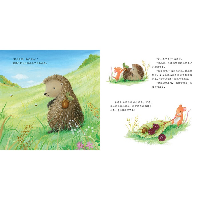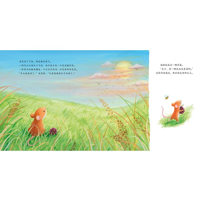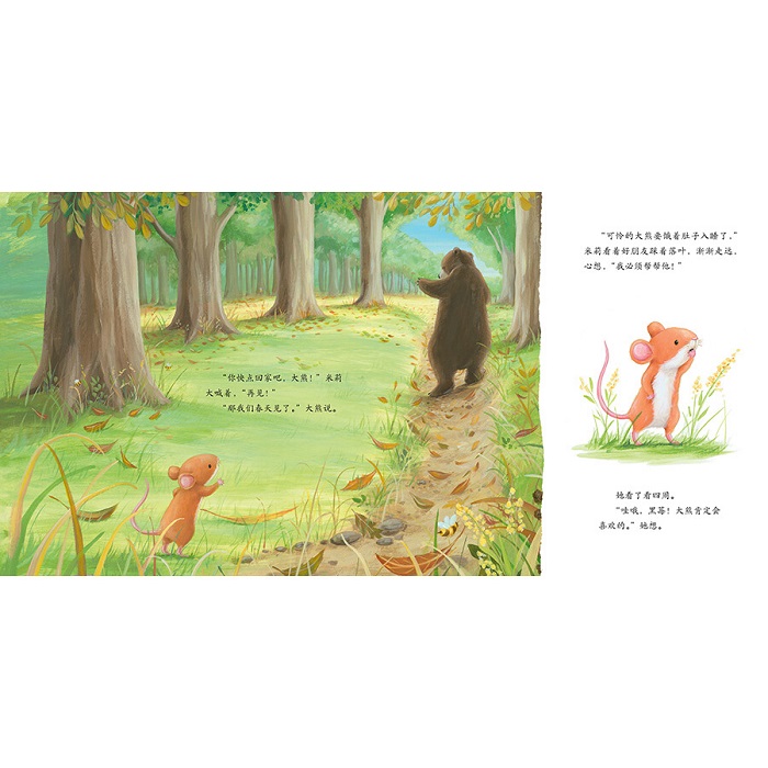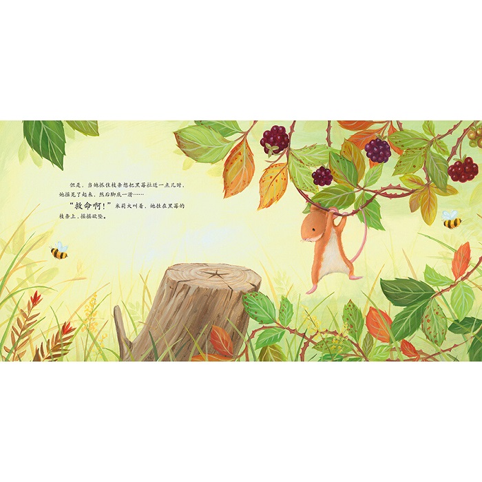 冬天快到了,大熊准备冬眠了。但是小老鼠米莉听到大熊的肚子正咕噜咕噜地响。看着大熊离去,米莉心想不能好朋友饿着肚子入睡。于是,她去给大熊摘黑莓。但是米莉太小了——她小够不到枝条;小到搬不动食物;甚至当食物滚下山时,她小到追不上……米莉这一路上跌跌撞撞,她能在大熊冬眠前把黑莓送达吗? 这是一个关于勇气和友谊的故事。倔强的米莉并不愿意别人说她小,她也愿意为了朋友而付出努力。这本书适合每一个充满毅力的孩子。