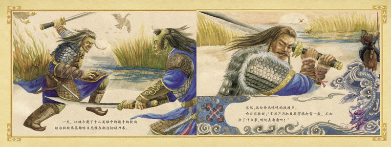 新疆青少年出版社出版的这套《江格尔》绘本历时五年,五年的时间我们和这部史诗对话,我们一起翻阅史料,一起跋山涉水,一起促膝讨论,一起从粗略的大线条走到今天的精美画面。只为让中华民族的史诗巨著通过绘本这条绚丽的通道走入孩子心中。
