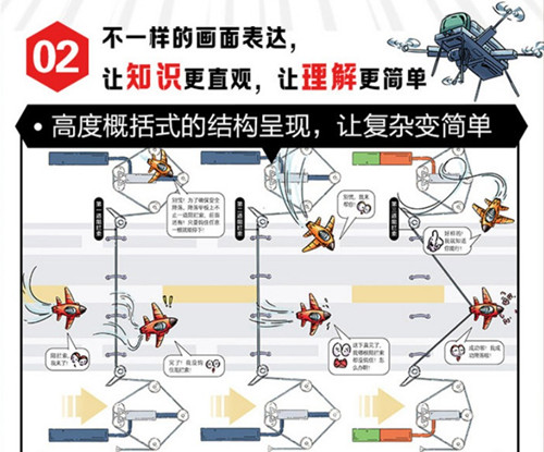 这是一套以漫画形式讲述现代武器的少儿科普丛书,共8册,每册围绕一种武器展开,分别为导弹、航母、潜艇、装甲车、战斗机、枪械、坦克和单兵装备,从武器性能、发展历程、应用原理、实战演练等方面进行了系统的介绍,让小读者不仅知道这些武器的强悍之处,并且“知其然知其所以然”,了解强悍之处背后的化学、物理、仿生学等多学科的知识。可以说,这是一套围绕武器展开的的综合性科普丛书。 《新武器驾到》是一套以武器为中心的全方位通识教育读物,这里让武器变身角色、从武器开始、立足于武器但不局限于武器,而是以武器为圆心,向周围其他相关学科辐射发散,除了能了解不同的武器(种类、功能等),还能了解它们的发展历程——为什么各种武器能“进化”成现在的样子?每一步发展的背后都隐含着怎样的原理?除了作用力与反作用力、惯性、压力与压强、声波与振动等基础物理知识之外,更能提前了解高难度的角动量守...