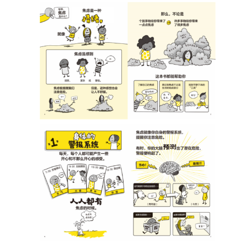 我们每个人在生活和学习中都会感到焦虑,例如在备考、在众人面前演讲和处理人际关系时。太多的焦虑会成为我们的阻碍。本书可以帮助我们识别焦虑,理解为什么它只是我们生活的一部分,并为你提供重新找到内心平静的方法和工具。本书借助风格幽默、明快的插图,介绍了9种克服焦虑的“工具”,如方形呼吸法、写烦恼日记、放松肌肉、想象等。 本书作者根据生理学、心理学等领域的科学知识,解释了焦虑产生的机制,并介绍了使心灵平静的方法。本书画风轻松幽默,焦虑压力被描绘成一团粘糊糊的灰色物质,有着瞪大的眼睛和木棍般的手臂的形象亲和可爱。文字简洁精炼,适合青少年阅读。 一本科学提升抗挫力的心理互动练习。 这本书用极其【幽默】、【可爱】的方式讲述了焦虑相关的问题。帮助孩子提升抗挫力,理解挫折、焦虑只是我们生活的一部分。 书里配有9种“焦虑修复工具”,如方形呼吸法、烦恼日记、肌肉放松,可视...