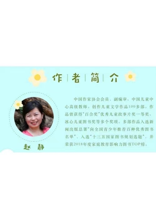 赵静,著名儿童文学作家,中国作家协会会员,副编审。 出版《允许我流三滴泪》《老妈你真烦》《再见,小马虎》等系列儿童文学作品80多部,其中20多部作品被港台和国外出版与推广。 作品曾获“冰心儿童图书奖”,入选和团中央的“全国青少年喜爱的优秀图书”,入选中宣部和文化部等九部委主办的“知识工程”书目,多次入选国家新闻出版广电总局“向全国青少年百种图书名单”。 对孩子细腻敏感的内心世界了如指掌,被小读者视为“最好的朋友”。