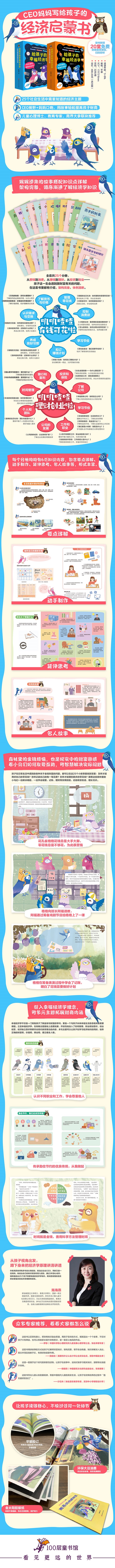 本套书是面向5~8岁儿童的财商故事绘本,共13册。本套为系列第二辑,旨在教导孩子认识职业、公司以及创业相关的知识。第一板块和银行相关,主题包括银行的功能、复利、投资和保险,第二板块让孩子了解公司和创业,主题包括创立公司、社会分工、税金、销售、企业扩张和提升领导力,第三板块主题是认识职业,包括职业方向规划和学会尊重不同职业,最后以一集时间管理结尾,让孩子学会制定计划。