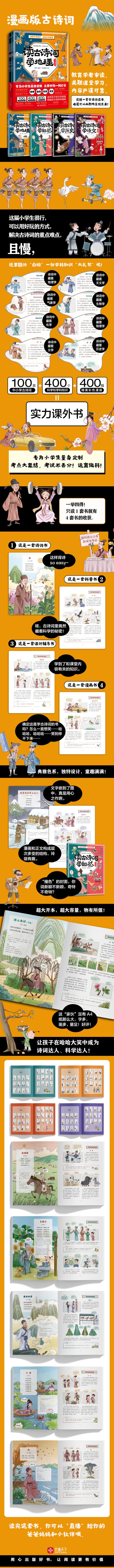 为什么“一江春水向东流”?为什么“化作春泥更护花”? “床前明月光”的“床”字到底有几个意思?“落花时节又逢君”隐藏着怎样悲凉的故事? “为谁辛苦为谁甜”是反问还是设问?…… 优美的古诗词中蕴含着大量的科学和学科知识,本套书从中小学背诵的古诗词中精选100首,分为《读古诗词学地理》《读古诗词学自然》《读古诗词学历史》《读古诗词学语文》4本。 通过20多万字、400多幅彩绘漫画解析古诗词,内容涉及地理、天文、气象、生物、物理、化学、历史、语文等400多个学科知识。语言幽默诙谐,插画好玩有趣,小读者能在哈哈大笑中学懂古诗词,掌握科学知识以及与课堂学习相关的学科知识。