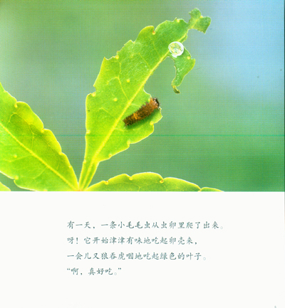 小青虫从闪闪发亮、圆溜溜的虫卵中孵化出来了。