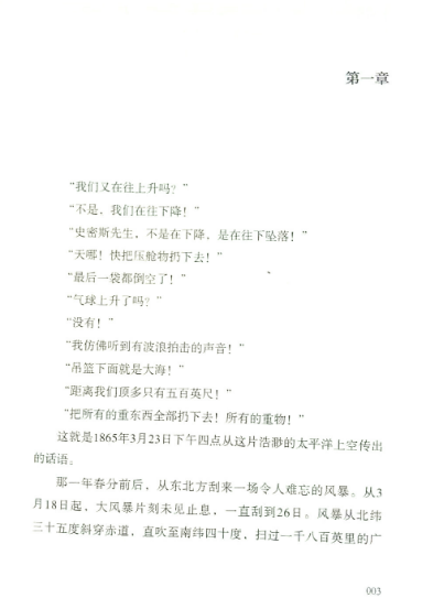 两点钟的时候,气球离水面仅仅400英尺了。这时候,突然听到一声洪亮的声音,那是一个没有任何恐惧的人的嗓音。回答他的声音也同样显得坚强有力。“东西都扔了吗?”“不,还有一万金法郎。”一个沉重的钱袋立刻落到海里。“气球上升了吗?”“上升了一点儿,但是一会儿又会下降的。”“还有什么可扔的吗?”没有了。”“有!……吊篮!”“让我们抓住网索,把吊篮扔到海里去吧!”