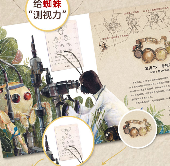森林里有一位昆虫医生,他在一棵黑李树的高处开了家诊所,每天都要接待形形色色的昆虫病人:蜘蛛、蚂蚁、甲虫、蚕虫、蟋蟀……他把所见识过的大森林中的所有昆虫的小秘密,都记录在了这本《昆虫医生的医药手记》里。这是一本适合4岁以上读者阅读的科普绘本,通篇以拟人的视角,讲述了森林里的昆虫医生医治各种受伤昆虫的神奇故事,在20多种昆虫的看诊过程中,为读者们介绍了不同昆虫的特征和生命知识。此外,美丽惊人的水彩插画,带读者进入一个奇幻的森林环境,大大激发了孩子对大自然和昆虫动物的好奇心和想象力!