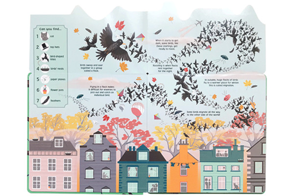 Peek under the flap to reveal the flock of birds in the sky, or school of fish in the coral reef. Then seek all sorts of objects hidden in the animal crowd. Can you find two top hats and five paper planes?