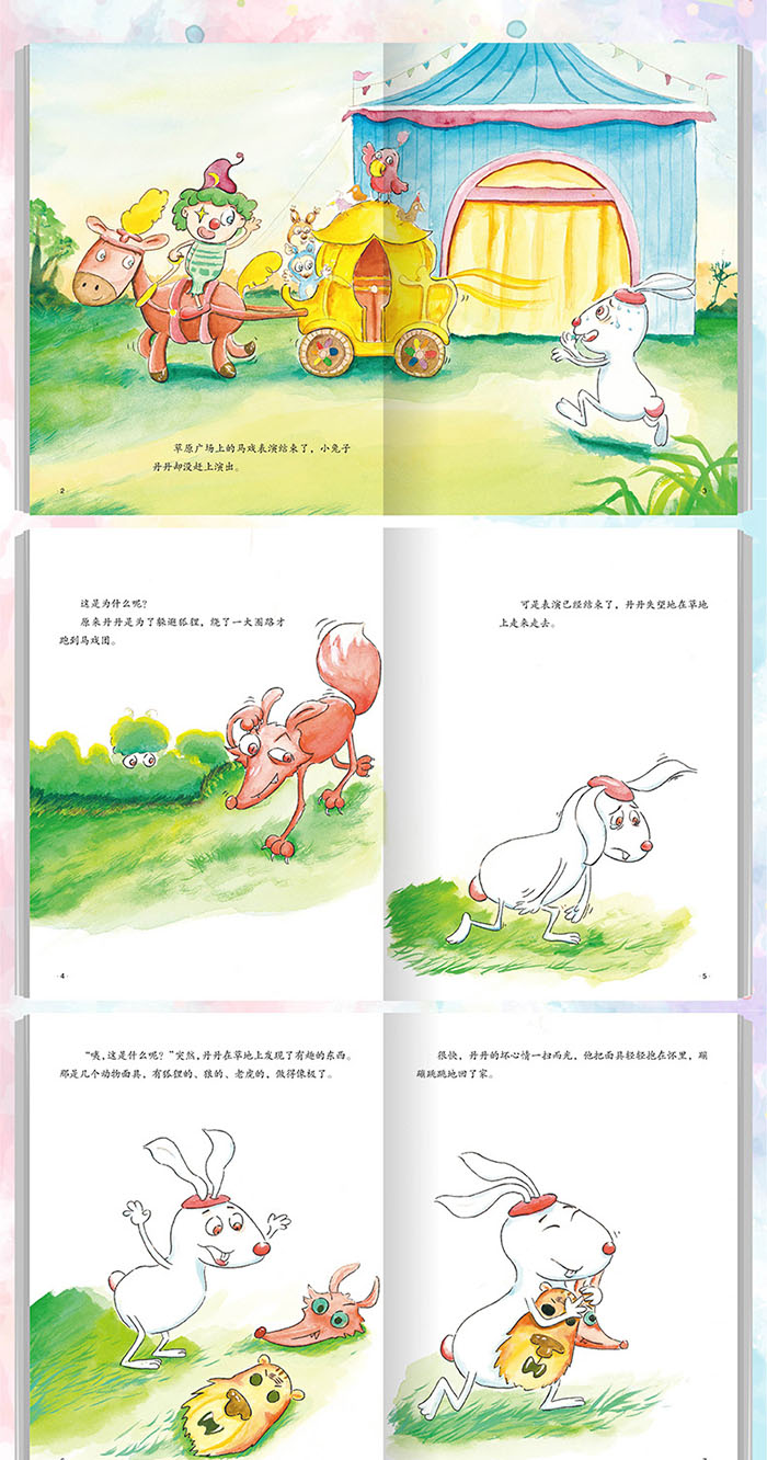 小兔子没有看到马戏团的表演却捡到了几个面具。有了这些面具,小兔子觉得以后谁都不怕了。第二天,小兔子要戴着面具去食肉动物的地盘威风一下。在路上,她用狐狸的面具偷吃了小老鼠的生菜,很得意。可当她遇到老虎的时候,却被老虎识破,差点落入虎口。最后,小兔子逃回家,她得到了教训,再也不敢耍小聪明了。