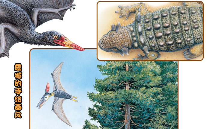 化石是怎样形成的?只有极少数的恐龙遗骸能够形成化石并被人们发现。要怎样才能形成化石呢?一个非常重要的条件是:恐龙必须死在特定的地点,比如河边或海边,这样它的尸体才会迅速被淤泥掩埋,然后在漫长的历史中,经过一系列地质作用而形成化石。翻开左边的小折页,看看这个神奇的过程吧。