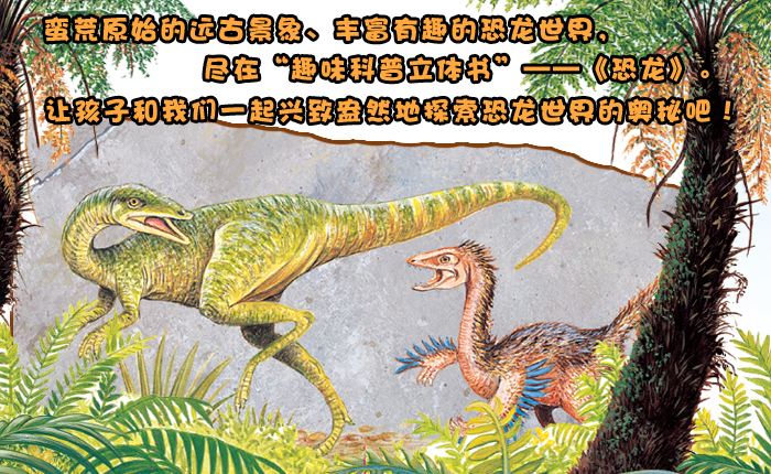 ★英国**童书出版集团Templar Publishing,*受欢迎趣味科普立体书系列,是西方国家开启儿童阅读科普兴趣的**! ★*直观的立体参与感与体验感,知识性与趣味性的完美集合,这套引自英国泰普勒的经典立体科普书,用多种互动的形式复活了各种各样的恐龙。更为震撼的是,这次用纸艺复活的3D恐龙,使孩子们能将“侏罗纪”带回家,在家里跨越时空,探索充满刺激与神秘的恐龙世界。书中设计的“拉拉”、“翻翻”、“立体”的纸艺完美地将关于恐龙的知识用“动态”模式传递给孩子,让孩子先与知识互动,参与到知识的探索中,激发孩子学习的乐趣,*终获得丰富的知识。 ★孩子们在看书的同时,那些特别的立体设计,需要孩子们自己动手参与其中发现书中的奥秘,互动的阅读方式增强了阅读的参与性和主动性,让孩子成为阅读的主导者,而不是被动的跟随书本。
