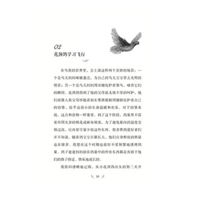 故事讲述了一只鸽子的传奇故事。这只鸽子脖颈处长着彩虹般的羽毛,因而被称作“花颈鸽”。花颈鸽在印度少年的精心照顾和艰苦训练下,*终成长为一个出类拔萃的飞翔高手,一个善于与大自然的狂风暴雨和猛禽搏斗的空中勇士,一只出色的战地信鸽。但当花颈鸽作为一只信鸽被征召到世界大战的战场时,却不幸身负重伤,变得异常消沉,与他情同手足的主人决心帮助他重拾勇气,重返蓝天。本书不仅将鸽子的生活刻画得细腻迷人,更将大自然的壮丽、奥秘和残酷描写得淋漓尽致。其中,喜马拉雅山的壮丽景象和人与鸟之间深沉的爱与关怀,着实令人动容。