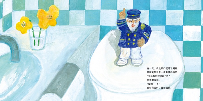 在《厕所船长》这本图画书里,作者巧妙地结合想象与现实的情节,以小男孩儿第一人称的口吻,诉说着自己和家人的如厕遭遇——有厕所船长、海盗,有洪水、大海,在三口之家的厕所中,展开了一场奇妙无比的有着圆满结局的冒险之旅!