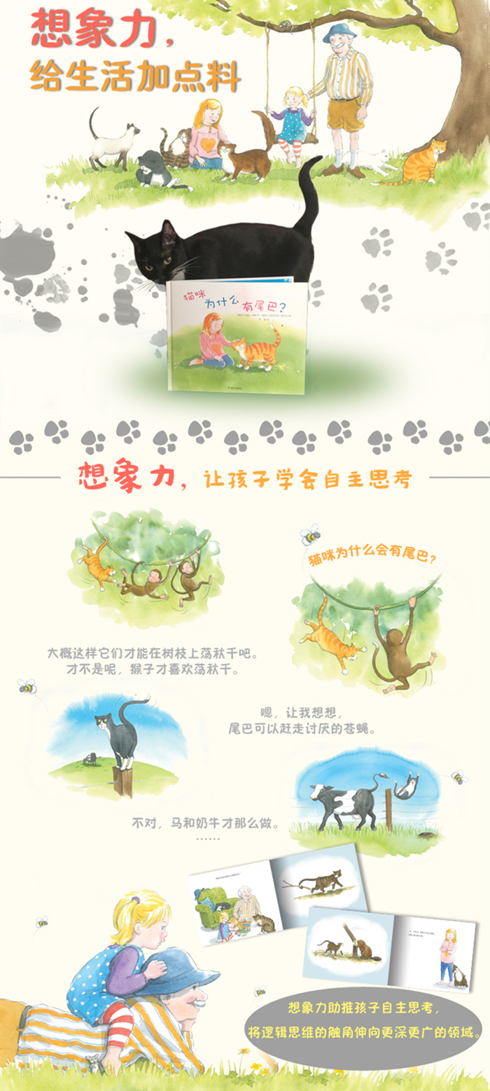 孩子们常常提一些非常有趣的问题,比如猫咪为什么有尾巴?在这个温暖而有趣的故事里,爷爷以一些不寻常的回答逗孙女们开心。孙女们和爷爷以及他的猫咪们待在一起,她们否定了爷爷那些傻得可爱的答案,直到她自己想出了一个甚至连爷爷也想不出来的主意。这是一个逗得祖孙都开心的故事,想必爷爷奶奶和孙子孙女们都会很喜欢的。