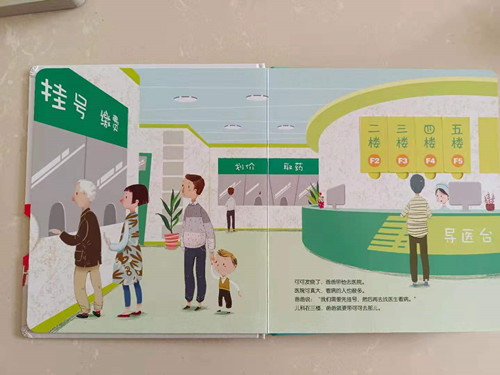 可可生病了,爸爸带他去医院,要先挂号才能去看医生哦。可可要去儿科看病,医院里还有哪些科室呢?口腔科,妇产科,化验科……这些科室都是做什么的,你知道吗?医生用压舌板压着可可的小舌头,看了看他的嗓子,又带上听诊器听了听他的呼吸和心音,可可都很配合,没有哭闹。要验指血了,可可有点儿害怕,你猜他哭了吗?
