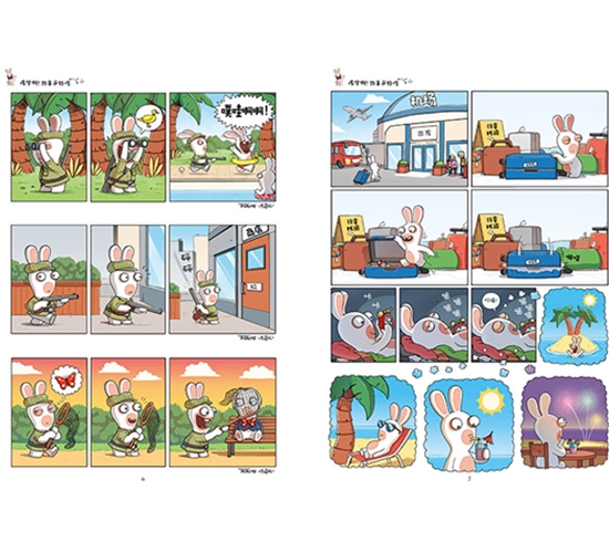 《雷曼4:疯狂兔子》是由全球知名游戏公司——法国育碧研发的电子游戏,自推出后风靡全球,深受玩家一致好评。该电子游戏的主人公——古怪、滑稽的疯狂兔子更在Youtube上吸引了5000万粉丝,相关产品销量超过1400万。“疯狂兔子爆笑漫画书”是一套以疯狂兔子为形象的漫画书,为国内首次出版,讲述了疯狂兔子是一群外星侵略者,他们喜欢模仿人类的行为,也因此产生了各种各样的笑话。这些兔子唠叨着谁也听不懂的兔语,时不时大声尖叫,凭借与生俱来的幽默感带给读者无穷无尽的欢笑。丛书插图线条流畅,情节风趣幽默,能够激发小读者的想象力和创造力,带来更加丰富的阅读体验。分册《兔鲨来了》讲述了疯狂兔子正在海里游泳,一条“鲨鱼”朝他袭来,把他吓了一跳。原来,“鲨鱼”是男孩假扮的,男孩成功地捉弄了疯狂兔子,开心地哈哈大笑。气愤的兔子会展开怎样的反击呢?本书教育小读者要换位思考,才能找到合理的解决方案。