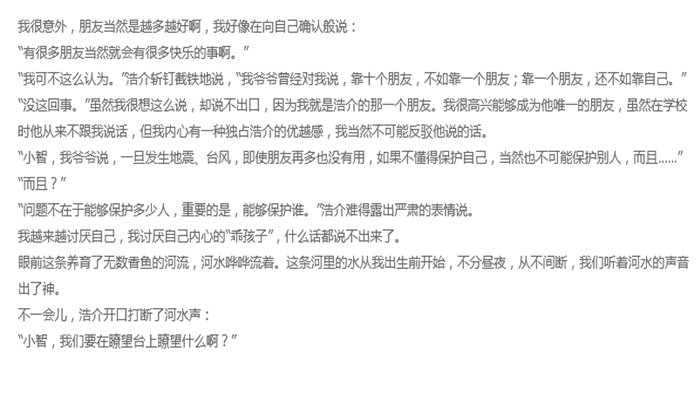 本书属于儿童文学故事书。健二和阿彻是从小一起在河里捉鱼、玩耍的好朋友,虽然两人都是亩小的六年级生,性格却南辕北辙,阿彻就象是村里的孩子王,健二则习惯事事听从阿彻指挥。然而在转学生阿敦出现后,健二竟然违背了阿彻「不准和外来者玩」的命令,偷偷和阿敦玩在一起。今年暑假,健二和阿彻依照往年的传统,要在芒草平原里搭建祕密基地,为了抵抗“看不见的敌人”,他们决定这次要把基地盖得更坚固,还要准备各种攻击敌人的武器。随着基地逐渐成形,三个男孩间的友情也出现微妙的变化。究竟“看不见的敌人”是谁?是来自都市的转学生?还是隐藏在他们内心深处的东西?