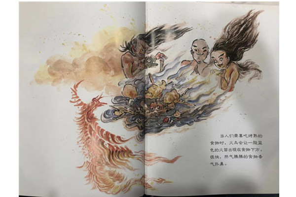 山神送给燧人氏一只金色的火鸟。从此,燧人氏带着这只神鸟四处游走,为人们取暖、烤熟食。人们只知道火的好处,但不知道如何生火。但是好景不长,火鸟生病了。没有了火,人们无法像从前一样获得熟食、获得温暖。燧人氏认为自己当初没有照顾好火鸟,为此非常生自己的气。他一气之下捡起石头扔出去,就在小石头与大石头碰撞的那一瞬间,出现了火星。就是这偶然间的发现,让燧人氏知道了如何生火。于是他将这个方法告诉了乡亲们。绘本中的每一本都融入了一种中国传统艺术手段,比如写意国画、泥泥狗、木版年画、传统水墨等,并且用全新的媒介形式将这些传统艺术形式呈现出来,让现代的孩子能更好的理解传承传统艺术。本书在全国多所幼儿园进行试讲,得到家长和老师们的一致赞誉。同时,在博洛尼亚童书会上,也受到众多国外幼教专家和童书作家的肯定。因此,我们坚信本书将会有非常看好的市场前景。
