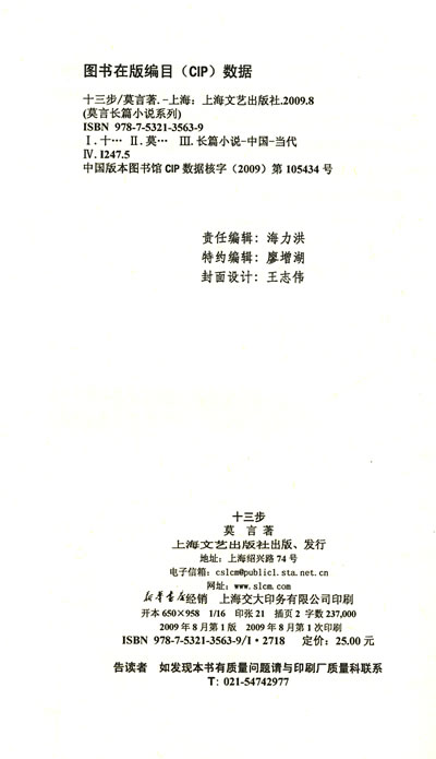 《十三步》是莫言在1988年运用荒诞艺术手法描写知识分子和现实生活的一部力作。中学物理教师方富贵累死后,由于得给王副市长让路整容,被塞进冰柜,居然又荒诞离奇地复活了。但以为他已死的妻子屠小英却拒绝他再进家门。殡仪馆特级美容师李玉蝉把死而复活的方富贵改容成自己的丈夫张赤球,让他代替自己的合法丈夫登讲台给学生上课,而让真正的张赤球去做生意赚钱。真正的张赤球则像一个孤魂野鬼,变得无家可归——现实生活中原有的秩序已不复存在。此次出版的是全新修订版。