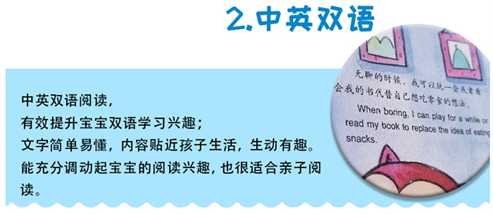 中英文双语阅读,有效提高宝宝双语学习兴趣,文字简单易懂,也很适合亲子阅读,卡通的配套插图,搭配文字更具可读性,颜色鲜艳,吸引孩子阅读兴趣。
