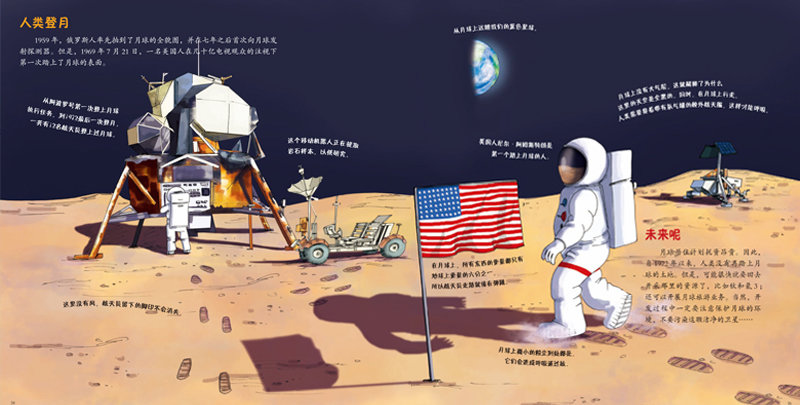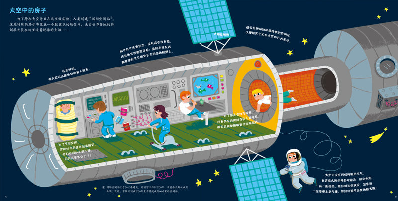 人类用火箭把人造卫星发射到太空,多亏这些卫星,我们可以从一个全新的角度看地球。仔细观察卫星传送回来的图片,可以发现地球是多么的美丽与脆弱,也能意识到它是多么地需要我们细心呵护。我们也研究探索其他星辰:向这些星球派遣航天员、发射宇航探测器。科学家以这些勘探活动为对象,进行了一系列的研究,在这个过程中,发明了很多好用又好玩、还与我们的生活息息相关的新奇东西,比如,激光温度计、无线耳机、太阳能汽车、不掉屑的薯片等等。
