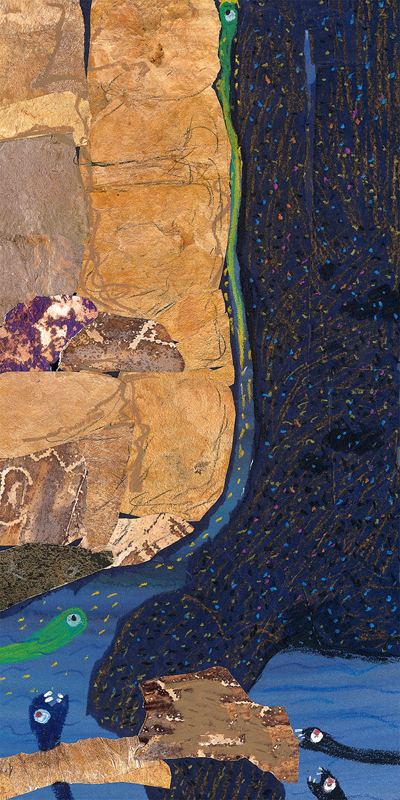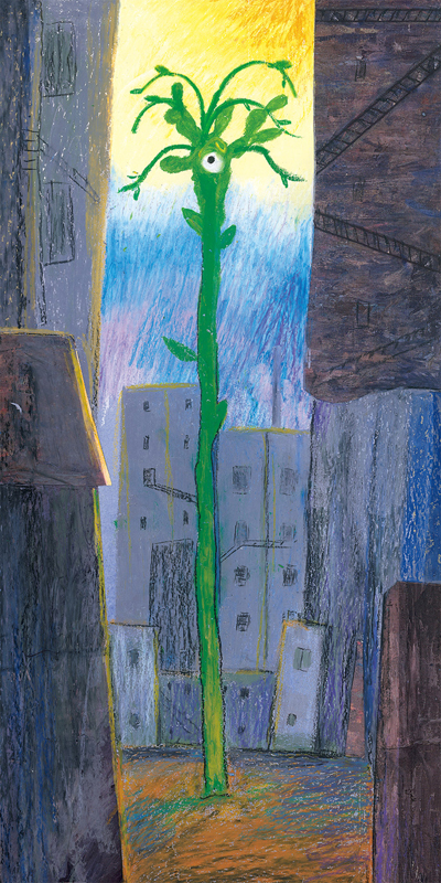 极具感染力且细节丰富的画面,带来耳目一新的感受。颜色、线条、视角、构图以及质地的变化,传达出丰富的信息与情感;拼贴、水粉、撕纸等多种绘画技巧的综合运用,使画面感染力十足。