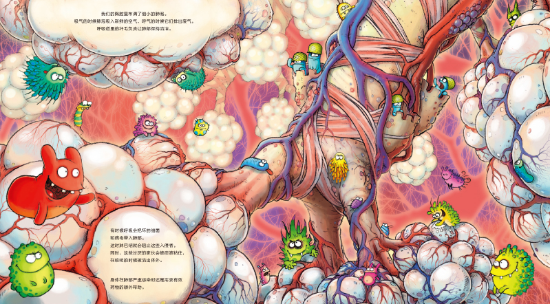 ◎ 生动放大的细节绘图让孩子们可以清晰看到口腔、肺泡、肠道等的样子,更能身临其境地感受扁桃体、淋巴、有益细菌是如何积极对抗邪恶绿色细菌、帮助身体的;可打开的小纸板下更有孩子们可以轻松掌握的健康小贴士。
