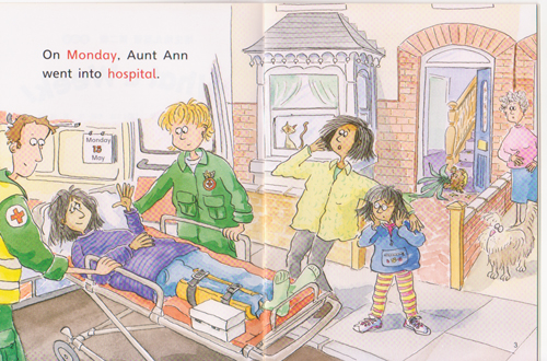 On Monday, Aunt Ann goes to hospital.