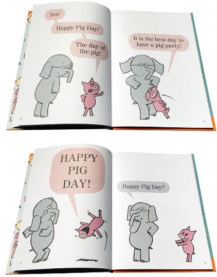 In Happy Pig Day! Piggie celebrates her favorite day of the year! But will Gerald the Elephant be include