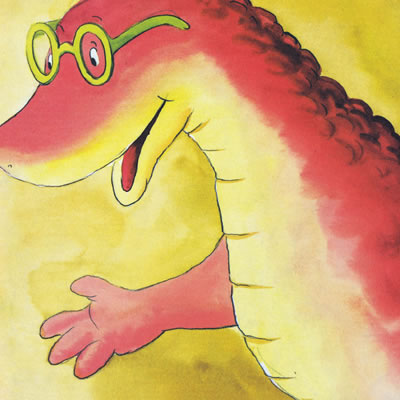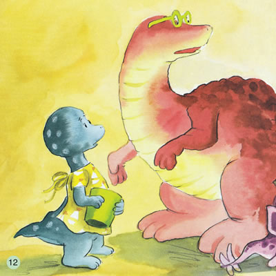最后要说的,是系列图画书的最大亮点:这是一套可以边读边唱的图画书,每个故事里都穿插了两小段诗歌,一首出现在小恐龙遇到挫折、出现心理波动的时候,另一首则出现在问题得到解决、心情豁然开朗的时候。我在以往给孩子们读书的过程中总结有这样的经验:孩子们最喜欢在听一个故事的过程中,穿插一小段能唱起来的儿歌,她们会跟着唱,而且会非常开心。于是,在翻译这些小诗时,我特意和出版社的编辑一起寻找了一些中国家长比较熟悉的欧美儿童歌曲,把诗歌处理成歌词的形式套用进去,并力求词句的上口和节奏、韵律的合拍。我们希望爸爸妈妈在给孩子读书的时候,真的能开口唱起来。也许我们自己唱歌“五音不全”,没有关系,只要满怀信心地大声唱出来,孩子们一定会非常开心,他们才不在乎自己的爸爸妈妈唱歌是不是“跑调儿”呢,而且很快也会参与其中。亲子共读,共唱,这样其乐融融的景象,是不是很令人向往?