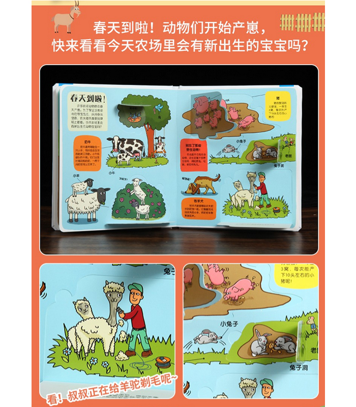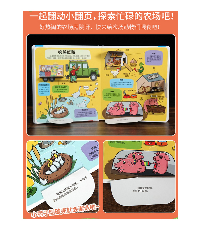 农场、恐龙两大经典畅销主题,带领孩子深入了解农场生活、恐龙的日常;活泼可爱的绘图,生动形象的文字、形式多样的翻翻页让孩子在玩中学;原版工艺,品质保证。