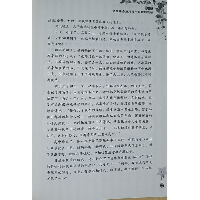 《父母*不该对孩子说的话》用模拟的形式,再现了家长在日常生活中教育孩子时使用不当言行的场景,某些情景甚至怵目惊心,局外人会觉得不可思议,而这正是许多家长日常生活中不自知的行为。本书将父母对孩子的这些不当言行总结揭示出来,目的就是要让父母们提高警惕,在与孩子沟通交流的过程中,不要不了解情况就随意去说,不考虑周全就信口去说,不顾及孩子的自尊就粗暴地说,不分时间场合就无休止地说……总之,多站在孩子角度考虑,顾及孩子的感受,一切以真正对孩子成长有利为目标,避免使用不利于孩子成长或伤害孩子的教育方式。