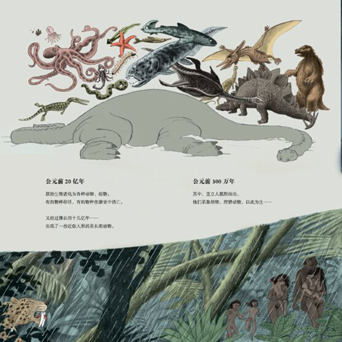 这是一部讲述和描绘全人类历史的通史类绘本作品。涵盖从生命起源、人类诞生,直至二次世界大战、冷战对峙的人类历史,时间跨度达13亿多年。