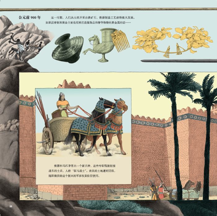 ●物质生活的丰富赋予了人们闲暇时间,可以从事发明创造……由此出现了手工业者。人们发掘出金、铜、锡等金属,制造出青铜器,冶金业由此诞生。