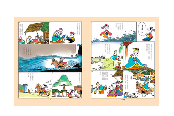 看张画儿当然比看一段文字有意思。画儿虽不能有动作,可是有含意,你越细心地瞧,越能发现出它里面的精辟所在。书中有了插图更能增加读者的兴趣。如只重图,不重文字,把一张张的图连接起来,那便是连环图,您不要以为这两种图全是从西方传入的方法。其实就在中国早就有了。画庄子的寓言不能用写实的笔法——全成了俩老头儿对话,毫无趣味。也不能用一笔一笔机械式的日本漫画,会令原文主旨尽夫。