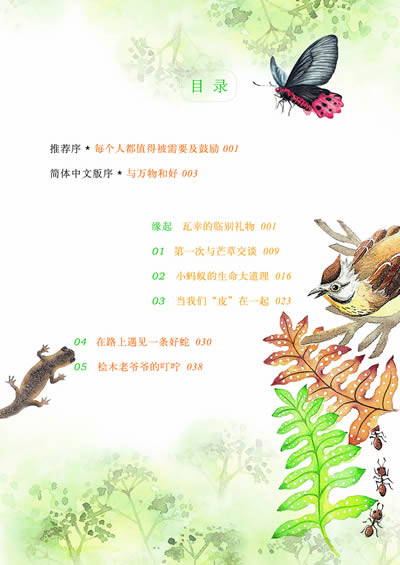 继《苦苓与瓦幸的魔法森林》后,公园义务解说员苦苓再次展开他与森林的秘密对话。这一次,可爱的泰雅小女孩瓦幸离开苦苓独自追寻梦想去了,临走前她拜托祖灵赐予苦苓神奇的能力,让他能与大自然的一草一木及昆虫动物们直接沟通。得此“超能力”的苦苓跟蚂蚁聊天,撞见猫头鹰和蝙蝠在聊天,听群鸟七嘴八舌,跟桧木爷爷辩论,并且发现,原来草木昆虫们每一位都个性十足,跟人类的想象完全不一样:慌忙走避的蛇敏感又害羞,不但有个会脱臼的下巴,会暂时萎缩的五脏六腑,甚至还有退化的脚;小蚂蚁辩才无碍妙语如珠,跟人类一样会畜牧、耕种,用树叶种植菌类,饲养蚜虫吸食蜜汁;蜜蜂“蜜”蜂,真正采花蜜的蜂其实不常看到,很多蜂都是肉食性的,还会从里到外把蜘蛛吃个精光……造物主对生命万物精巧的安排,带给苦苓无尽的惊奇,而读者跟随苦苓,也与大自然的一草一木一虫一鸟进行了精彩对话,仿佛获得了与自然界沟通的奇妙能力。