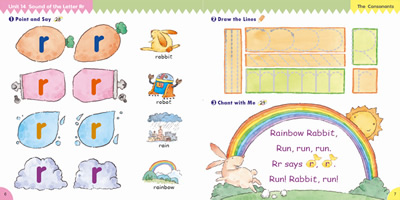 第四部分(4A、4B):英文字母当中元音的发音变化多,较不规则,学会基本的五个短元音,及21个辅音之后,孩子就能试着拼读出许多英语单词。更多的元音组合练习,让孩子悠游在字母拼读的世界。加上辅音的混合音,孩子的拼读能力,更上一层楼。