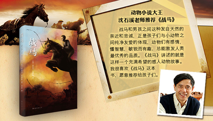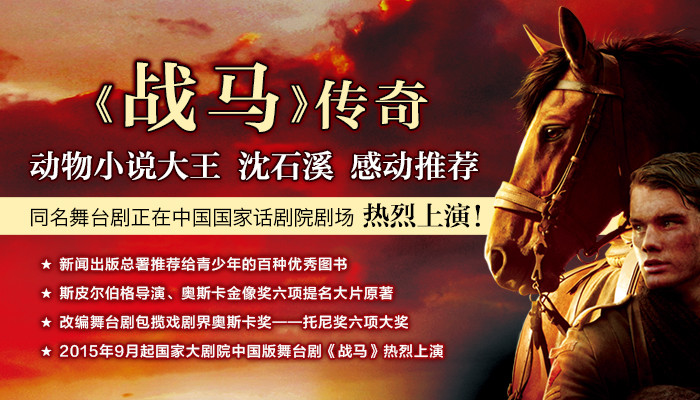 ★战马和男孩之间这种发自天然的亲近和忠诚,正是孩子们与小动物之间纯净友爱的体现,动物们有感情,懂智慧,敏锐而有趣,总能激发人类*秀的品质。《战马》讲述的就是这样一个充满希望的感人动物故事。我很喜欢《战马》这本书,愿意推荐给孩子们。——动物小说大王沈石溪