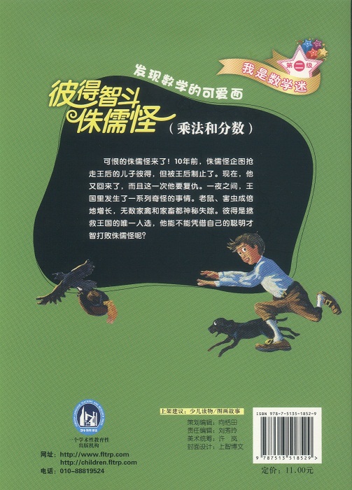 《彼得智斗侏儒怪》(知识点:乘法和分数)可恨的侏儒怪来了!10年前,侏儒怪企图抢走王后的儿子彼得,但被王后制止了。现在,他又回来了,而且这一次他要复仇。一夜之间,王国里发生了一系列奇怪的事情。老鼠、害虫成倍地增长,无数家禽和家畜都神秘失踪。彼得是拯救王国的唯一人选,他能不能凭借自己的聪明才智打败侏儒怪呢?