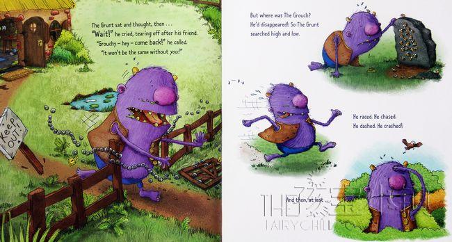 大咕哝(The Grunt)是一个脾气很坏的山精,他喜欢一个人呆着,不打扫卫生,不整理房间,这样的他却收到了一封聚会邀请信。大咕哝十分恼火,是谁在这个无聊的星期二提出这个无聊的邀请呢?他决定暂且不管,先到镇上大闹大玩一番。可是,当他回到家里的时候发现,真的来了一位叫做小牢骚(The Grouch)的小山精,而他竟敢在院子里自个儿开起了Party。火冒三丈的大咕哝开始了破坏性的还击,他决定要将这个小家伙赶出自己的院子。不过,小牢骚带来的一块好吃的虫子蛋糕却打动了他,慢慢的他发现自己已经喜欢上这个小家伙了,而且在不知不觉中他们已经成了一对好朋友。