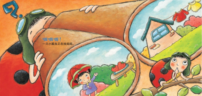 找妈妈嗡嗡嗡,小瓢虫找妈妈的旅行记!与小瓢虫一起上路,去感觉一下“粗糙”与“光滑”,记住各种表现质感的词语吧!n