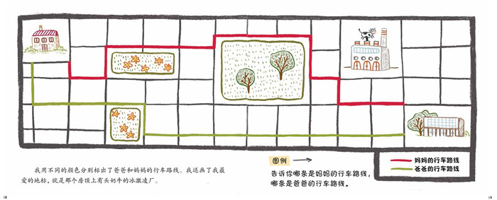 书中的主人公芙洛拉特别喜欢画画,尤其是画地图。她用一连串好看好玩的地图,向我们讲述了她们一家的日常生活。