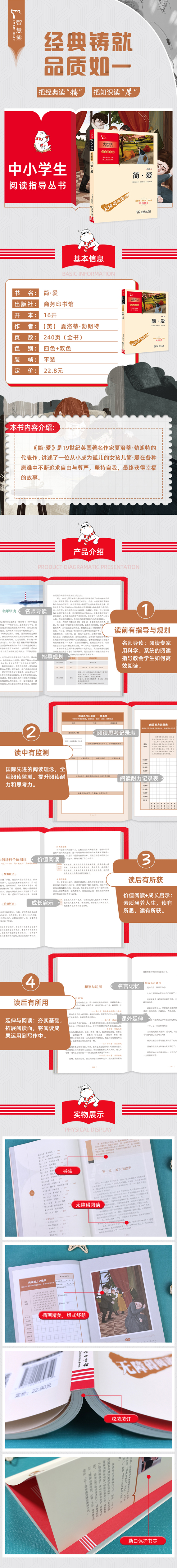 《简 爱》是19世纪英国著名作家夏洛蒂·勃朗特的代表作,讲述了一位从小成为孤儿的女孩儿简·爱在各种磨难中不断追求自由与尊严,坚持自我,*终获得幸福的故事。 主人公简·爱从小失去父母,被寄养在舅妈家中,难以讨得舅妈的喜爱。后来,她被送进慈善学校,在极其恶劣的条件下仍坚持学习。从慈善学校毕业后,简·爱鼓起勇气开始迎接新生活,应聘到桑菲尔德庄园当家庭教师,后来成了罗切斯特先生的女儿——阿黛尔的家庭教师。在此过程中,简·爱和罗切斯特先生之间擦出了爱情的火花。可就在两人的婚礼那天,一个关于罗切斯特的重大秘密浮出水面,婚礼也不得不中止。得知那个秘密后的简·爱伤心不已,毅然决然地离开了罗切斯特,踏上了一段未知的路程……