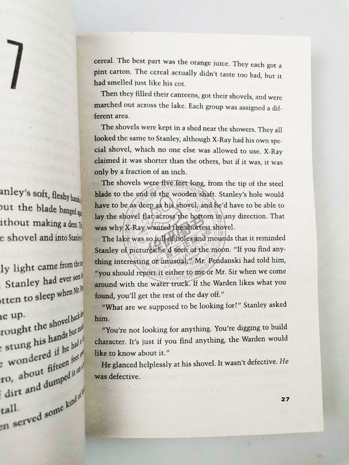 Holes《别有洞天》是美国儿童文学作家路易斯•萨奇尔的代表作,一部充满奇妙创意且扣人心弦的儿童文学作品,也是一部同时获得纽伯瑞金奖和美国国家图书奖的儿童文学,曾持续154周居“今日美国”畅销书排行榜,堪称美国儿童文学史上的奇书。 推荐理由: 1. 美国国家图书奖、纽伯瑞金奖、号角童书奖等大奖作品,学校老师都推荐的经典读物; 2. 故事情节充满幽默、想象、冒险、刺激,能引起青少年的阅读兴趣; 3. 英文原版,词汇简单,阅读难度不大,中学生或大学生都适合阅读。 Winner of the Newbery Medal and the National Book Award! This #1 New York Times bestselling, modern classic in which boys are forced to dig holes day in and day out is now available with a splashy new look. Reviews Winner of the Newbery Medal Winner of the National Book Award A New York Public Library’s 100 Great Children’s Books 100 Years Selection “A dazzling blend of social commentary, tall tale and magic realism.” —Publishers Weekly, Starred Review “There is no question, kids will loveHoles.” —SLJ, Starred Review “[A] rugged, engrossing adventure.” —Kirkus Reviews “This delightfully clever story is well-crafted and thought-provoking.” — VOYA “[Sachar] comes fully, brilliantly into his own voice. This is a can’t-put-it-down read.” —The Bulletin