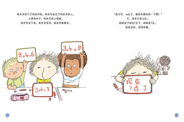 现在7点了,这可是妈妈说的,妈妈说的永远都对。于是,一整天,埃米尔都生